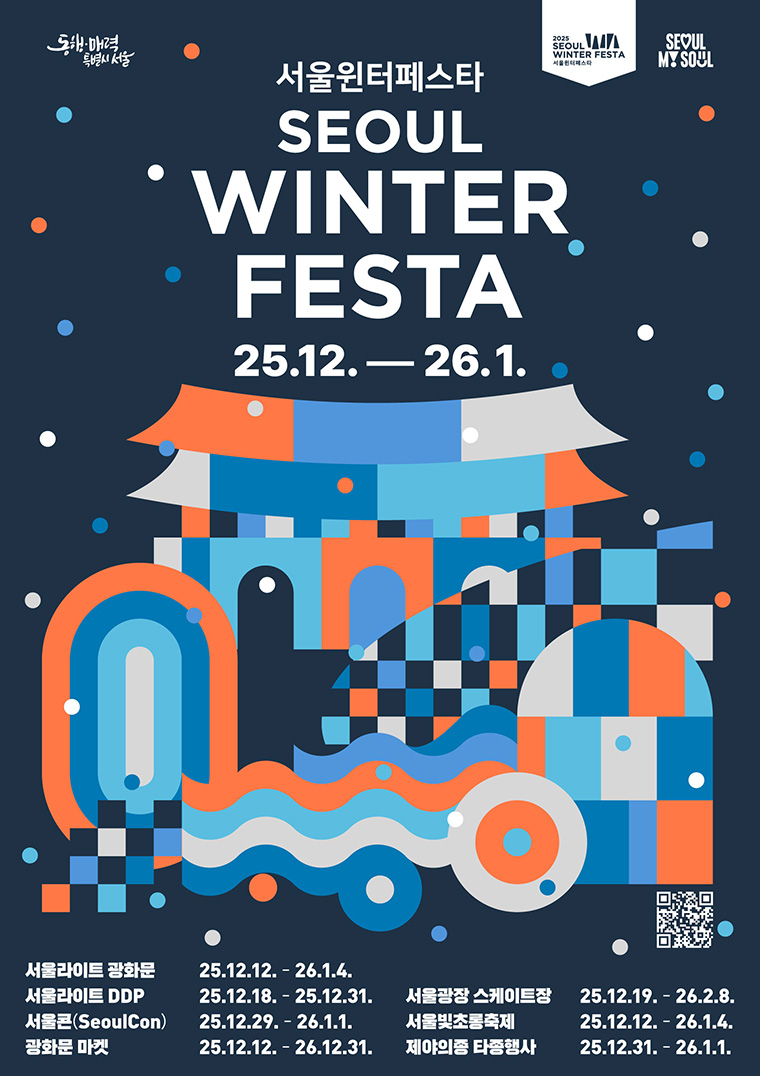 서울시가 12월 12일부터 2026년 1월 4일까지 24일간, 광화문광장~청계천~서울광장~DDP~보신각~우이천 6곳을 잇는 초대형 겨울축제 ‘2025 서울윈터페스타’를 개최한다.