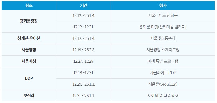 2025 서울윈터페스타 장소별 주요 행사