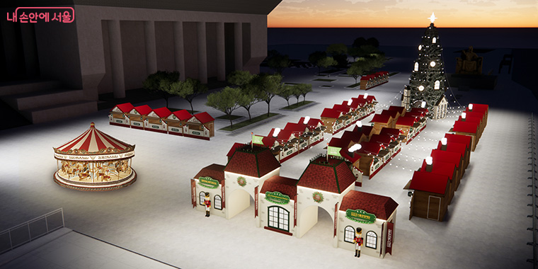 먼저 서울의 중심 광화문광장에서는 광장 자체를 초대형 캔버스로 꾸미는 ▴서울라이트 광화문(12.12~’26.1.4)과 ▴광화문마켓(12.12~31)이 진행된다. 특히 올해 광화문마켓은 ‘산타빌리지’를 콘셉트로 유럽의 크리스마스마켓을 재연하고 루돌프 회전목마도 설치해 방문객의 동심을 자극한다.