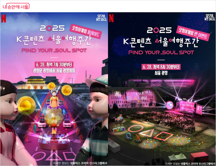 서울시는 6월 28일부터 7월 6일까지 광화문광장과 서울광장 일대에서 ‘2025 K콘텐츠 서울여행주간: 소울스팟을 찾아라’를 개최해 글로벌 한류 관광객을 맞이한다.
