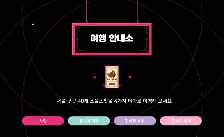 - 소울 스팟 여행안내소 : K-콘텐츠 전시 및 서울 촬영지 볼거리·먹거리 정보 제공