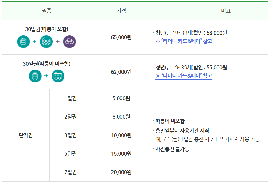 기후동행카드 권종