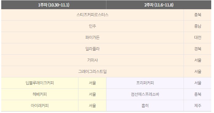 ○ 참여 브랜드: 전국 12개 카페·디저트 브랜드 참여 (6개 브랜드는 1주만 참여)