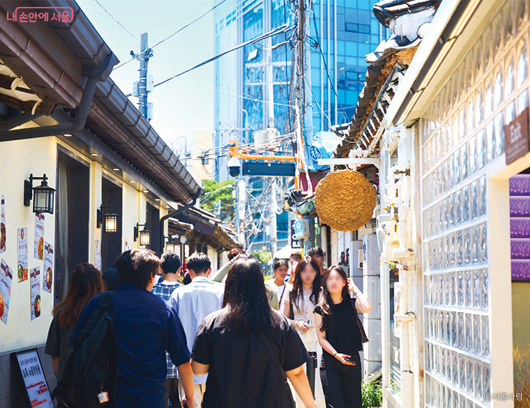 익선동한옥거리는 좁지만 감성이 묻어나는 공간들로 가득 합니다. 전통 한옥 구조를 유지한 매장부터 현대적 감각으로 재해석한 가게까지 이 거리는 걸으며 구경하는 것만으로도 즐겁습니다. 베이커리, 카페, 소품 숍 등 곳곳에서 소소한 이벤트가 열려 일상 속 작은 기쁨을 선사합니다. 두 주인공의 첫 데이트 장소 중 하나입니다.