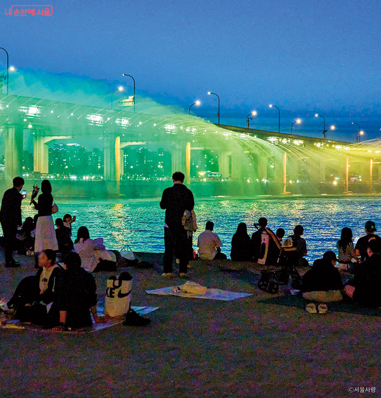 드라마의 오프닝 음악과 함께 흐르는 한강의 대표명소 입니다. 음악에 맞춰 펼쳐지는 분수 쇼는 수증기와 조명이 낭만 적으로 어우러지면서 보는 이에게 잠시 시간이 멈춘 듯한 기분을 안겨 줍니다. 분수 쇼를 감상한 후에는 한강 편의점에서 절대 빼먹을 수 없는 한강 라면 을 맛보세요. 드라마 속 주인공이 아니라도 충분히 행복한 시간을 보낼 수 있습니다.