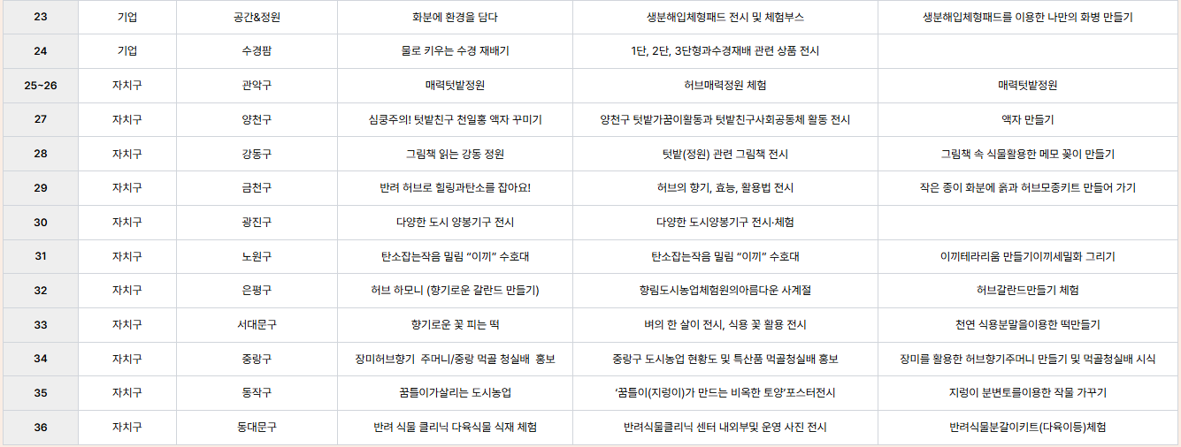 서울도시농업 박람회 프로그램