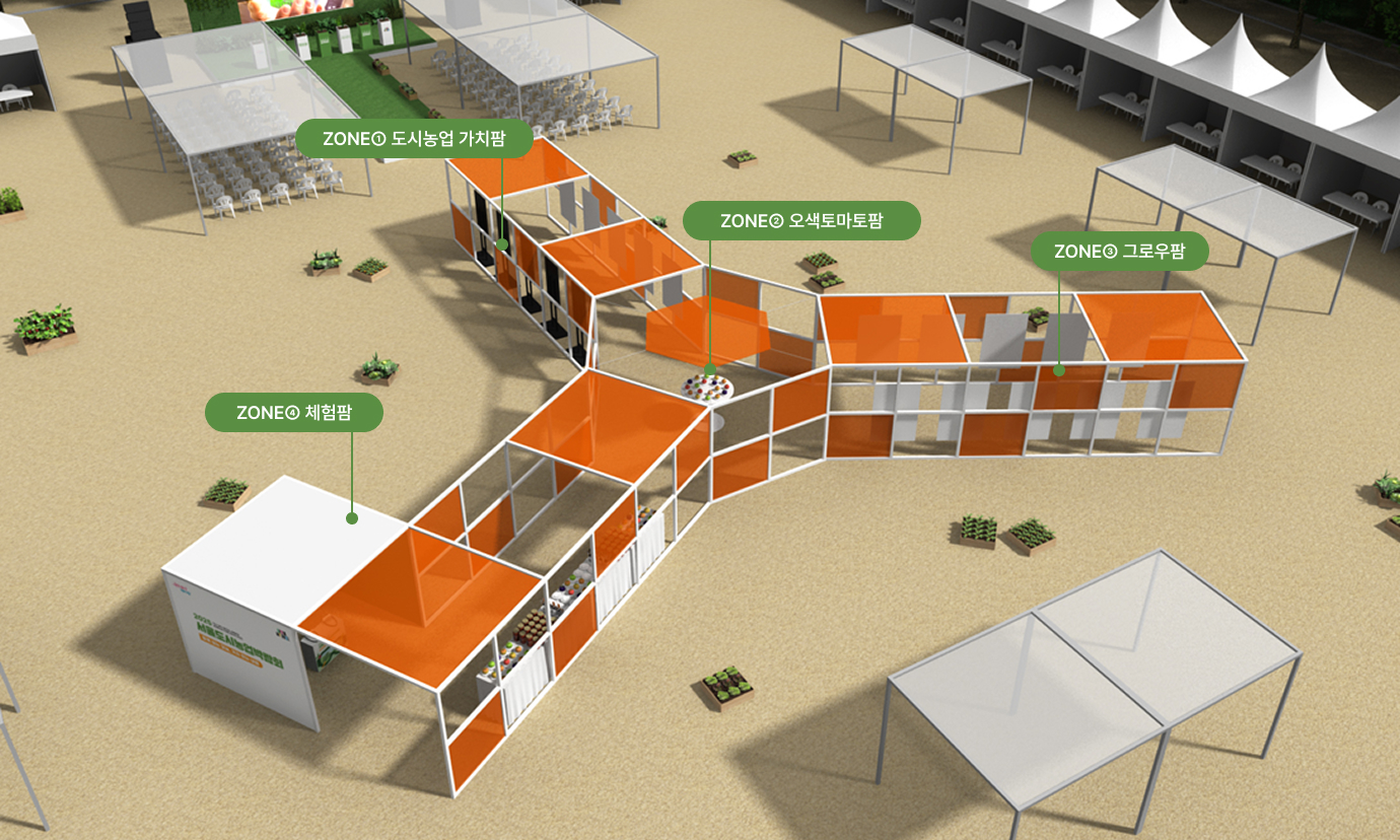 먼저, 주제관에서는 '토마토'를 중심으로 그로우 팜, 오색토마토 팜, 체험팜, 도시농업 가치팜 등 4개존으로 마련됩니다.