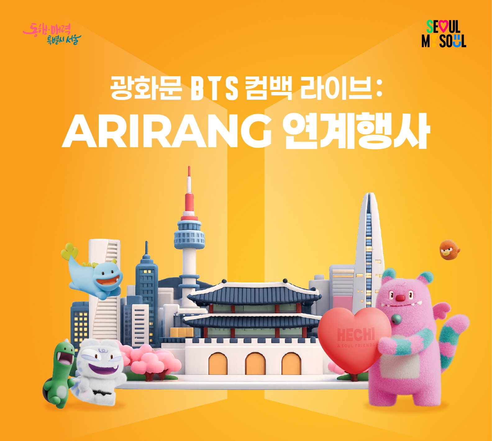 3월 21일 광화문 BTS 컴백라이브: ARIRANG 공연이 진행됨에 따라 K-문화를 사랑하는 전세계 팬들이 서울에 모입니다. 공연을 계기로 서울 곳곳에서 거리공연, 페스티벌 등 다채로운 행사가 펼쳐질 예정인데요. 어디서 무엇을 즐겨야 할지 궁금한 분들을 위해 연계행사를 캘린더로 정리해 소개합니다.