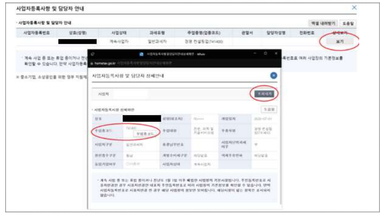 홈택스 ▶ 기타 세무정보 ▶ 사업자등록사항 및 담당자 안내