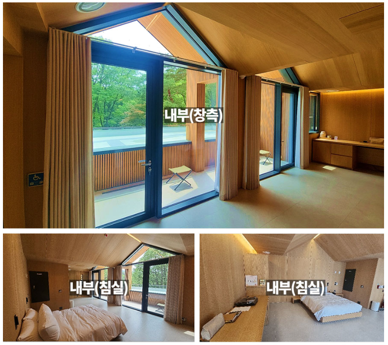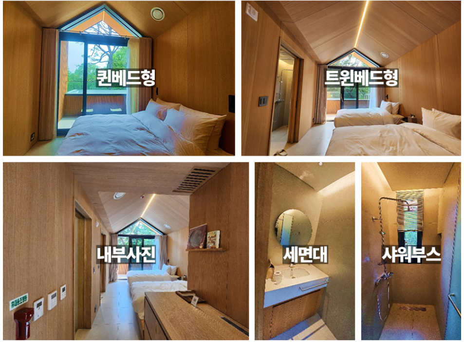 🏠 6인실과 본동 2인실은 천창이 없습니다.(통창을 통해 외부를 볼 수 있는 구조)