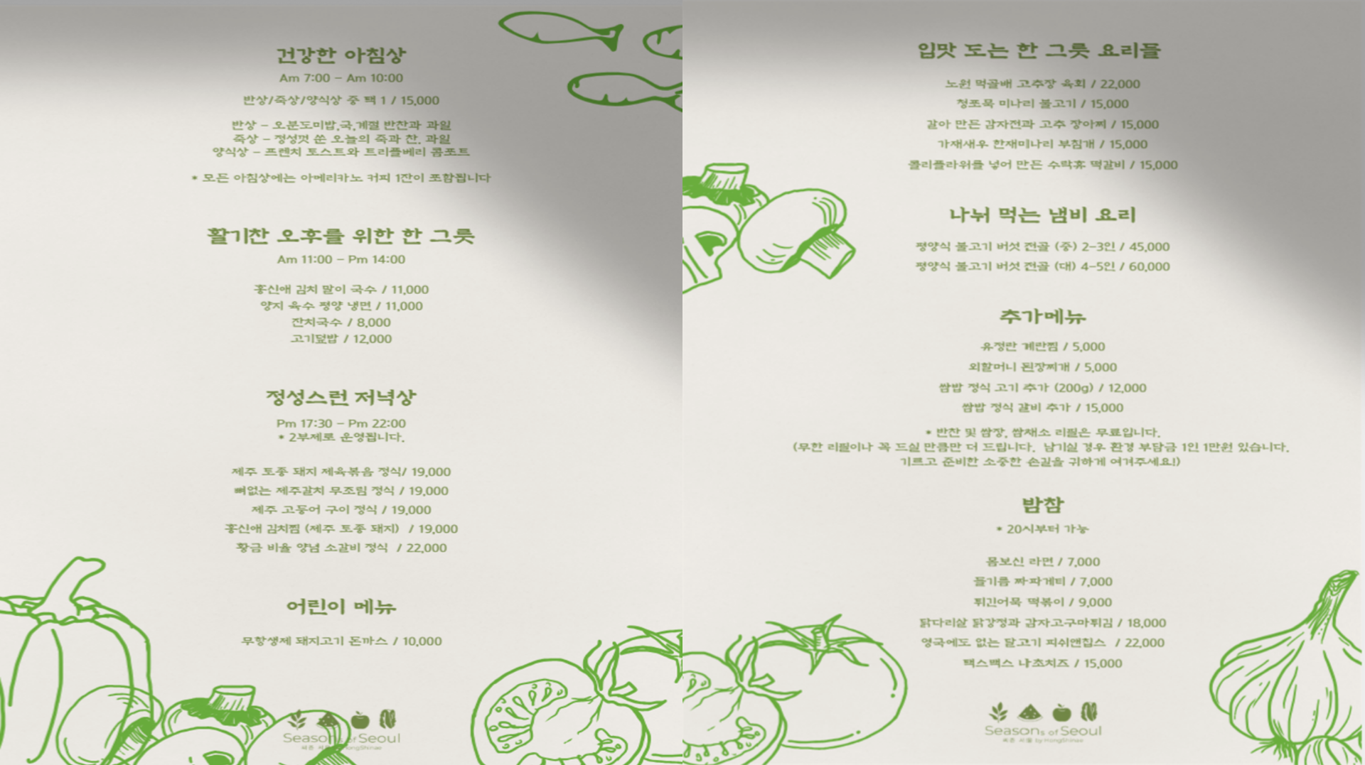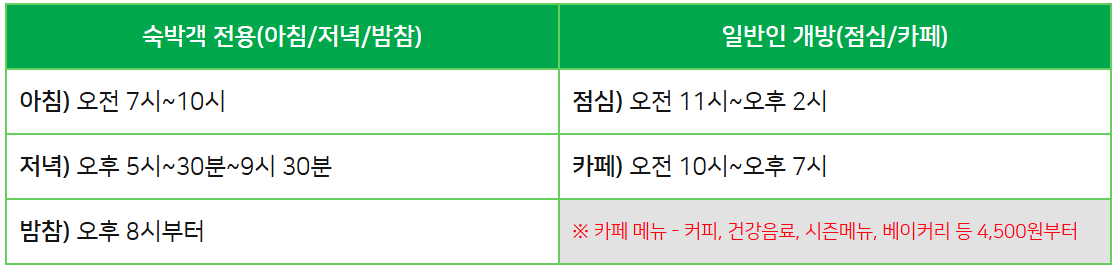 조식 • 석식 • 밤참은 숙박객 대상 파내, 점심은 모두 개방(노원구민 대상 10% 할인)