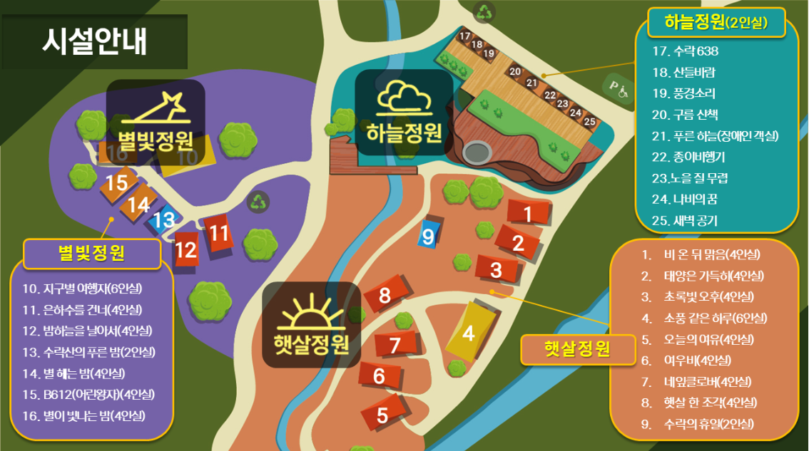 🏠 장애인 객실은 본동 21호(객실명 '푸른 하늘')입니다.
