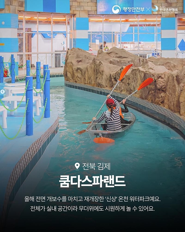 올해 전면 리모델링을 마치고 재개장한 신상 온천 워터파크입니다. 전체가 실내 공간이라 무더위에도 시원하게 놀 수 있습니다.