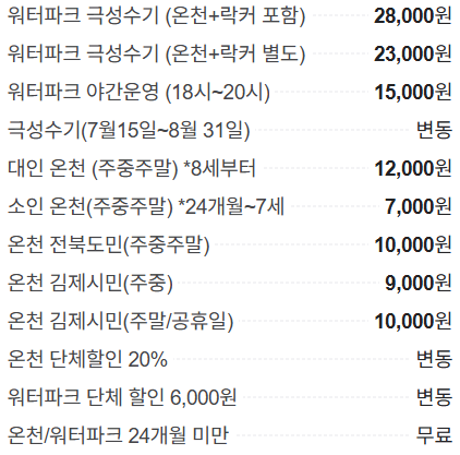 튜브 슬라이드, 놀이분수, 유아풀 등 온 가족이 물놀이를 즐길 수 있으며 2400명 수용규모의 대형 온천탕도 함께 운영됩니다.