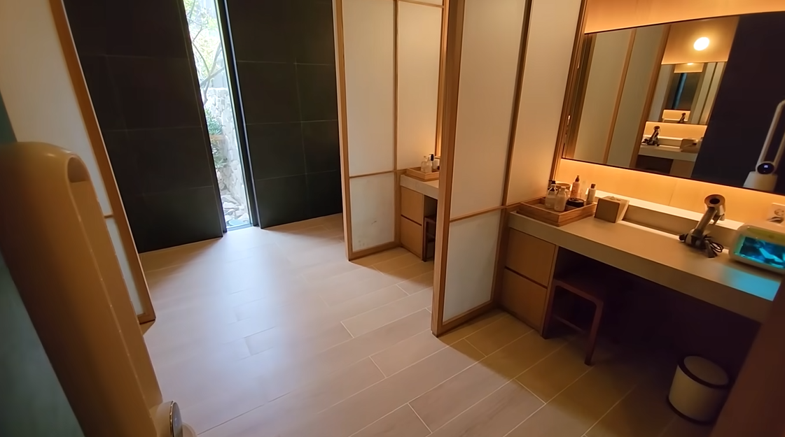 정면에 보이는 창호지 같은 부분이 뚫려 있어 노천 온천의 분위기도 즐기실 수 있습니다.