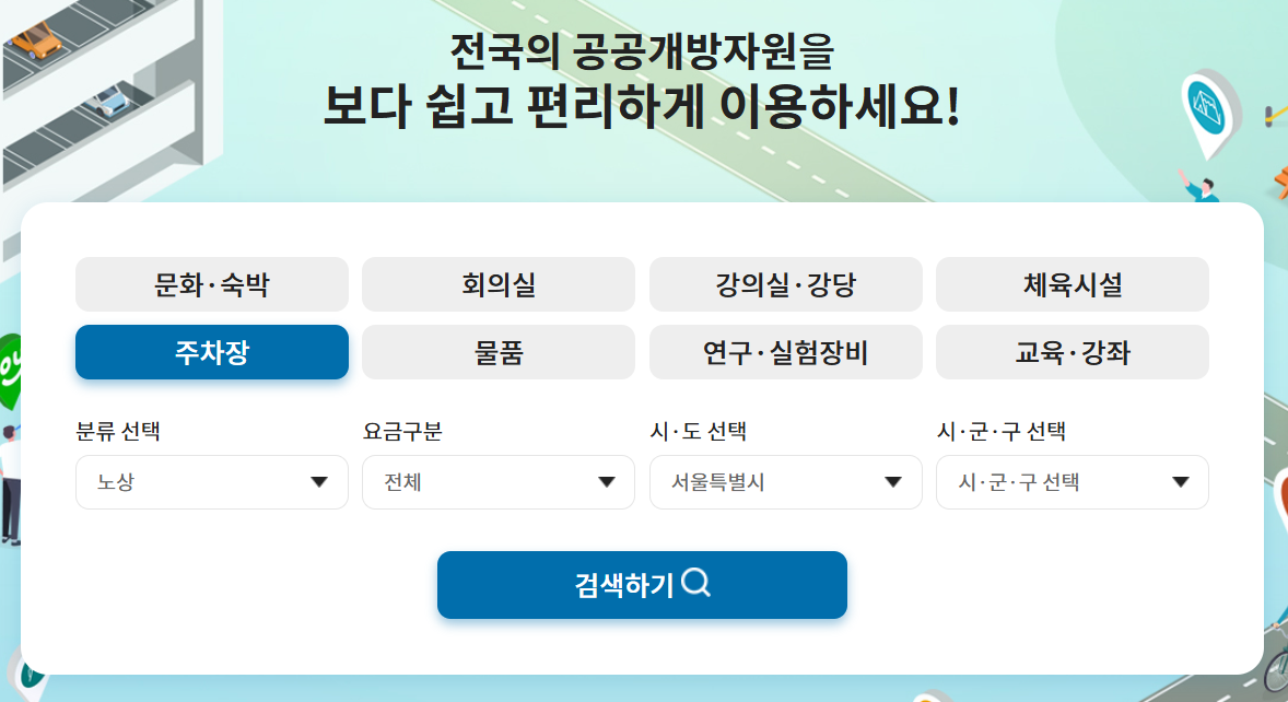 공유누리 사이트에 접속하여 주차장 메뉴에서 지역을 선택하고 이용요금 항목을 확인하면 무료 주차장을 쉽게 찾을 수 있습니다. 특히 명절 연휴 등 특정 기간에는 공공 주차장을 무료로 개방하는 경우가 많아 미리 공유누리를 확인하면 황금연휴 동안 안심하고 여행을 다니 실 수 있습니다.