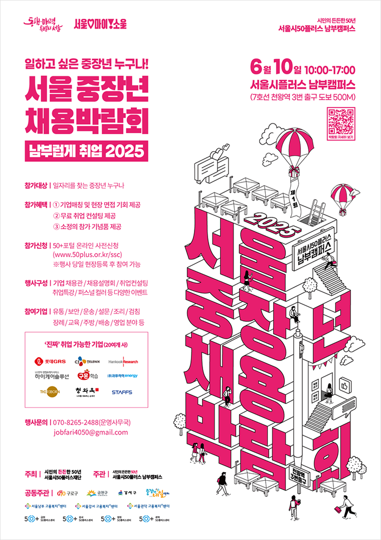 진행합니다. 첫 채용 박람회는 6월 10일 서울시 50플러스 남부캠퍼스(구로구 오류동)에서 시작합니다.