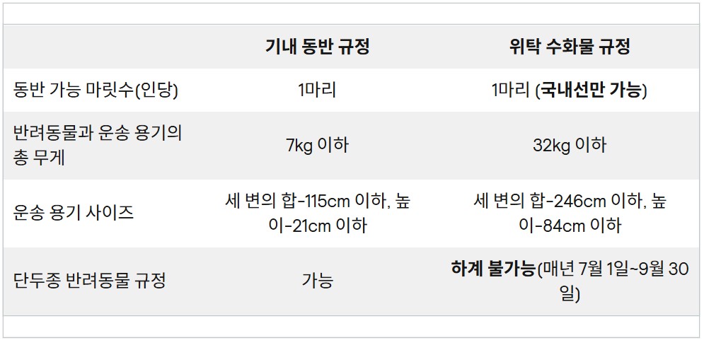 1. 대한항공 반려동물 규정