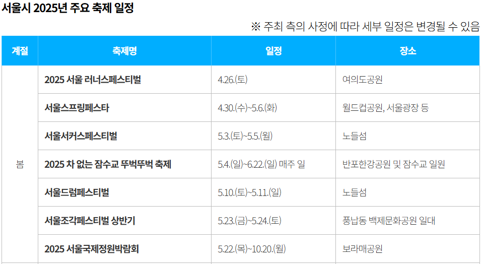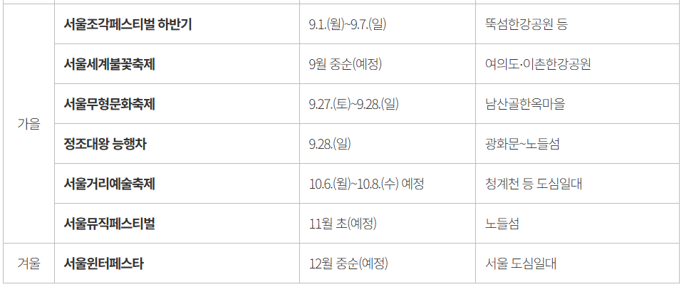 추억을 선사할 예정입니다. 올 한 해 서울에서 펼쳐질 다양한 축제드을 놓치지